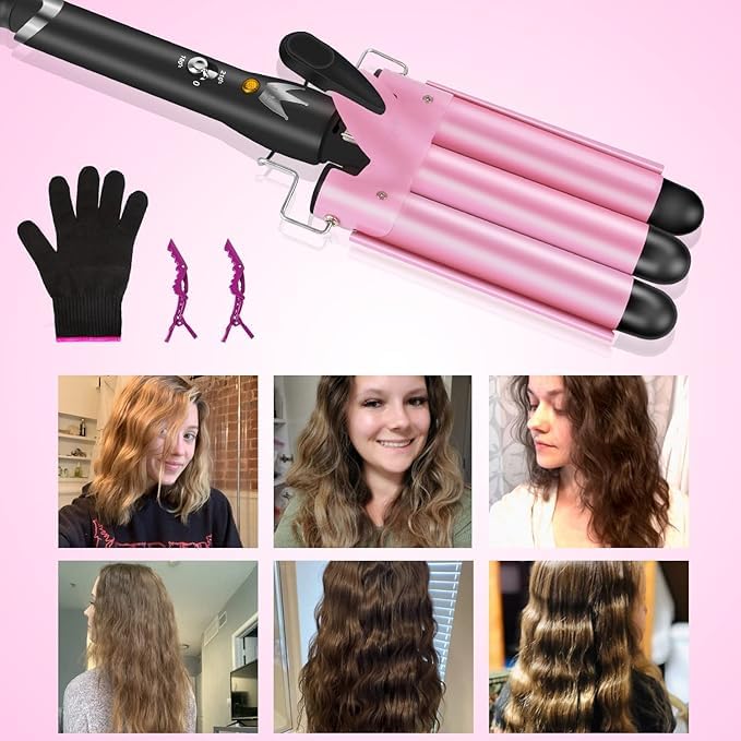 Partiamo dal look di questa piastra, un modello triferro abbastanza classico caratterizzato da tre cilindri riscaldanti affiancati e da una pinza ferma ciocche che rende lo styling più veloce. La piastra si presenta con una struttura abbastanza robusta e che si distingue per un bel colore rosa acceso. La particolare forma di questo strumento lo rende ideale per ricreare sui capelli onde larghe e naturali.